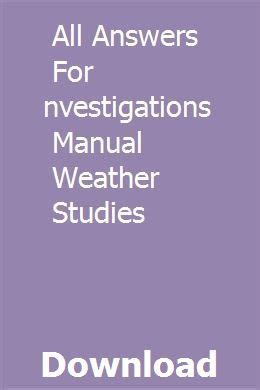 Read Online All Answers For Investigations Manual Weather Studies Doc online is a convenient and frugal way to read All Answers For Investigations Manual Weather Studies you love right from the comfort of your own home. Yes, there sites where you can get Doc "for free" but the ones listed below are clean from viruses and completely legal to use.