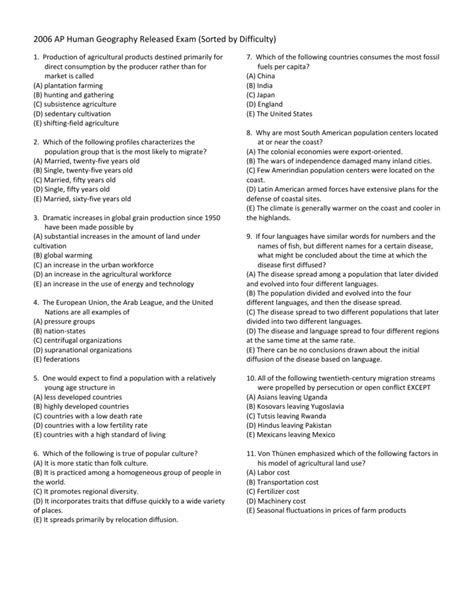 Read Online 2006 Ap Human Geography Released Exam Answers Reader online is a convenient and frugal way to read 2006 Ap Human Geography Released Exam Answers you love right from the comfort of your own home. Yes, there sites where you can get Reader "for free" but the ones listed below are clean from viruses and completely legal to use.